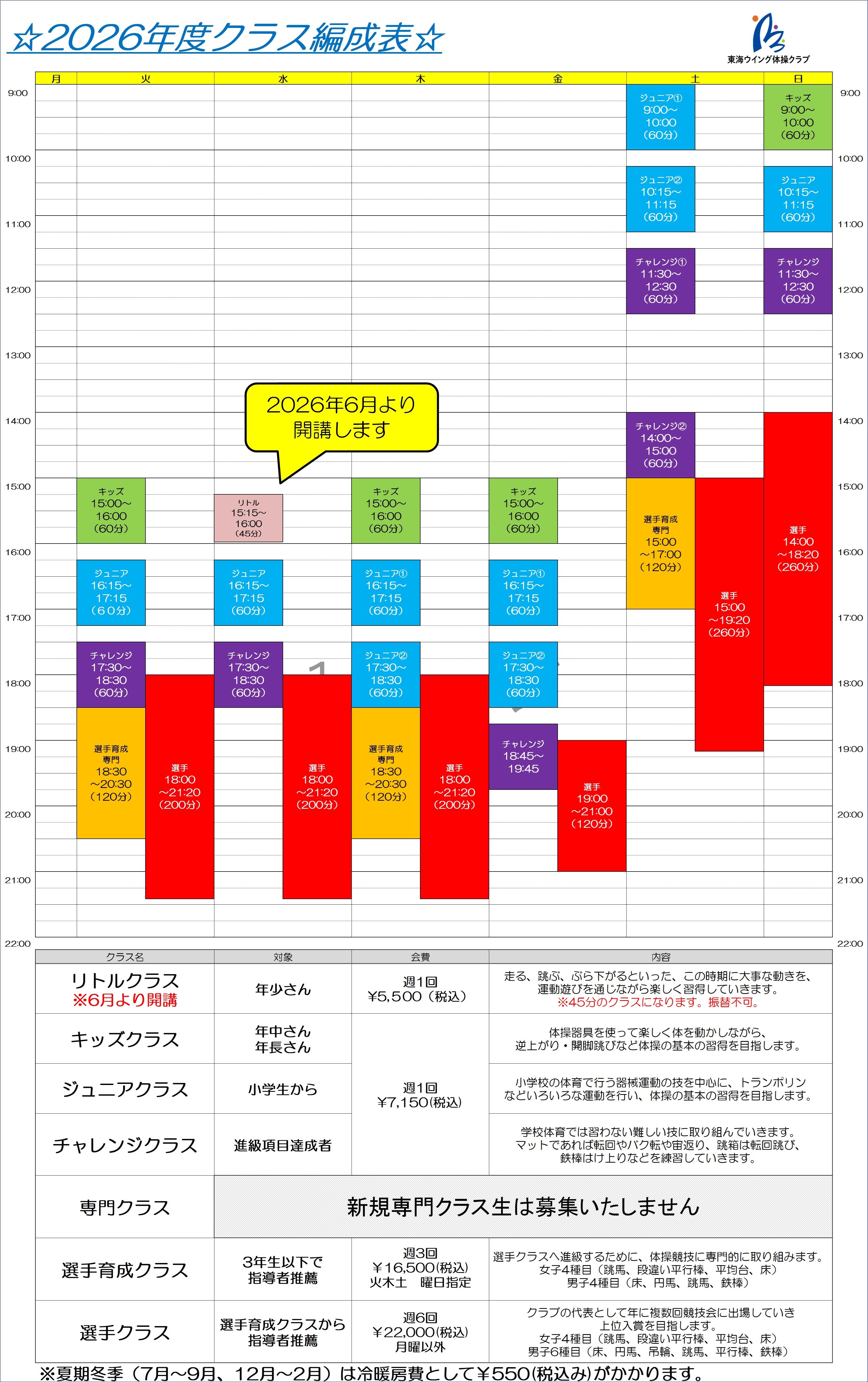 2026年度所属クラスの決定は3月初週に紙面にてお知らせいたします。